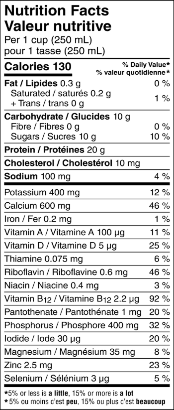 Ultrafiltered skim milk, Skim milk, Vitamin A palmitate, Vitamin D3, Lactase (enzyme).